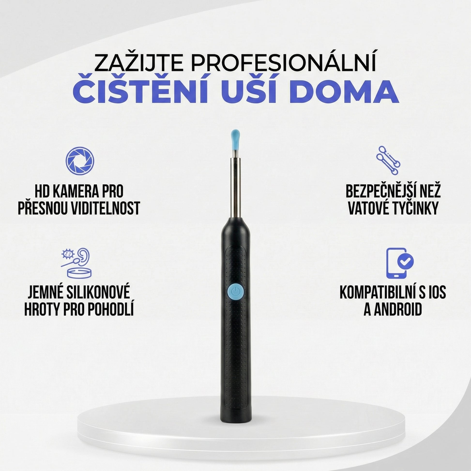 - Ideální péče pro uživatele sluchátek: Pokud často nosíte sluchátka nebo naslouchátka, vaše uši přirozeně produkují více mazu. Toto zařízení je skvělým pomocníkem, jak udržet zvukovody čisté a průchodné.
